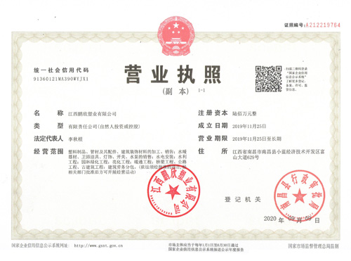 江西鵬欣塑業有限公司秉承“打造城市大自然的搬運工”的企業愿景,立足于市政工程市場領域,致力于管道科技產品和綠色環保產業的銷售和生產。以管道為基礎、成套技術為延伸,生產五大類九大系列產品,主要產品為:PE給水管、PE鋼絲網骨架復合管、HDPE雙壁波紋管、mpp電力管、cpvc電力管、PPR管、PE碳素波紋管、PE管件等。產品廣泛應用于市政工程、園林綠化灌溉、建筑消防、城市電力電纜鋪設、新農村建設工程、城市雨污分流工吸雨水排放工程等。